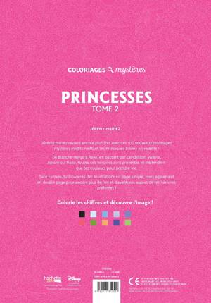 Jérémy Mariez propose 100 nouveaux coloriages mystères mettant les Princesses Disney en vedette ! De Blanche-Neige à Raya, en passant par Cendrillon, Vaiana, Aurore ou Tiana, toutes ces héroïnes sont présentes et n'attendent que des couleurs pour prendre vie. Des illustrations en page simple, mais également en double page pour encore plus de fun et de coloriage !