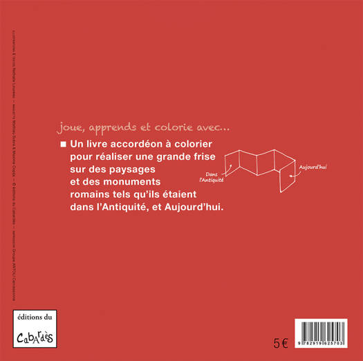 Voici un livre-accordéon à colorier en 5 volets avec deux grandes frises. Le tout présenté dans une enveloppe cartonnée placée dans un blister. En face A, l’époque antique (arènes, pont, activités, artisans...) et en face B le XXIe siècle. De petits commentaires accompagnent les images. On colorie, on s’amuse, mais aussi on compare et on observe l’évolution à travers le temps.