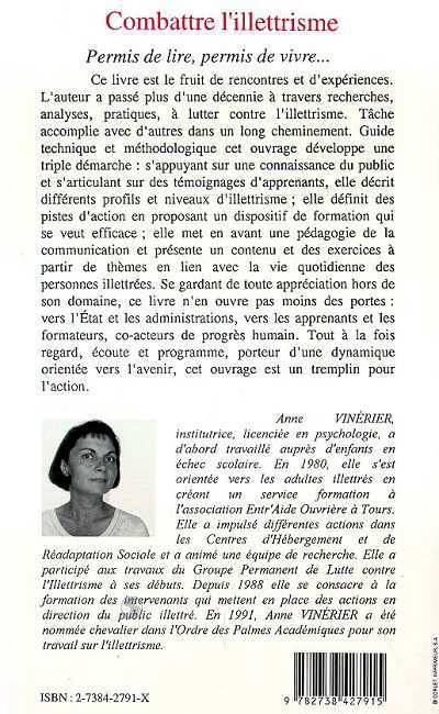 L'auteur a passé plus d'une décennie à travers recherches, analyses, pratiques, à lutter contre l'illettrisme. Guide technique et méthodologique, cet ouvrage développe une triple démarche : s'appuyant sur une connaissance du public et s'articulant sur des témoignages d'apprenants, elle décrit différents profils et niveaux d'illettrisme : elle définit des pistes d'action en proposant un dispositif de formation qui se veut efficace ; elle met en avant une pédagogie de la communication et présente un contenu des exercices à partir de thèmes en lien avec la vie quotidienne des personnes illettrées.