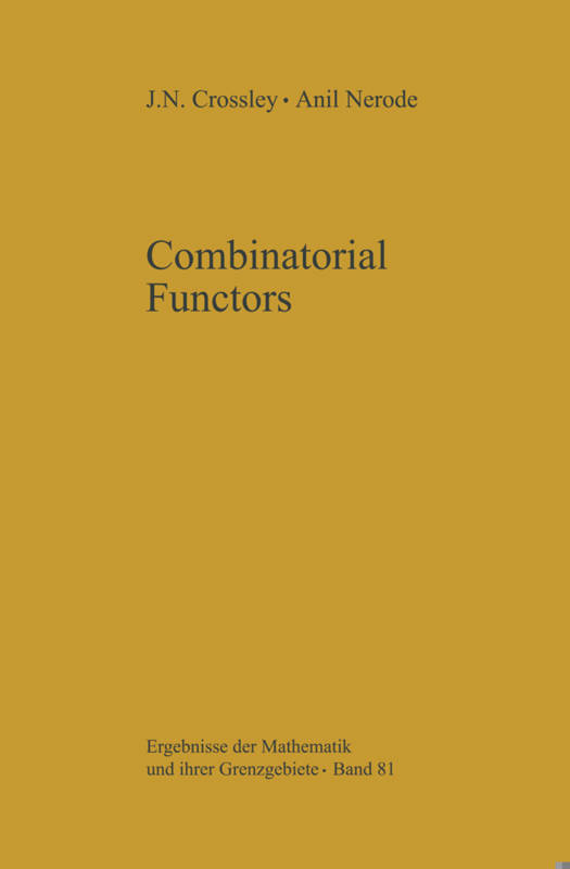 nullane de tantis gregibus tibi digna videtur? rara avis in terra nigroque simillima cygno. Juvenal Sat. VI 161, 165. 1966-JNC visits AN at CornelI. An idea emerges. 1968-JNC is at V. c. L. A. for the Logic Year. The Los Angeles ma- script appears. 1970-AN visits JNC at Monash. 1971-The Australian manuscript appears. 1972-JNC visits AN at Cornell. Here is the result. We gratefully acknowledge support from Cornell Vniversity, Vni- versity of California at Los Angeles, Monash Vniversity and National Science Foundation Grants GP 14363, 22719 and 28169. We are deeply indebted to the many people who have helped uso Amongst the mathe- maticians, we are particularly grateful to J. C. E. Dekker, John Myhill, Erik Ellentuck, Peter AczeI, Chris Ash, Charlotte ehell, Ed Eisenberg, Dave Gillam, Bill Gross, Alan Hamilton, Louise Hay, Georg Kreisel, Phil Lavori, Ray Liggett, Al Manaster, Michael D. Morley, Joe Rosen- stein, Graham Sainsbury, Bob Soare and Michael Venning. Last, but by no means least, we thank Anne-Marie Vandenberg, Esther Monroe, Arletta Havlik, Dolores Pendell, and Cathy Stevens and the girls of the Mathematics Department of VCLA in 1968 for hours and hours of excellent typing. Thanksgiving November 1972 J. N. Crossley Ithaca, New Y ork Anil Nerode Contents O. Introduction . . . . . . . 1 Part 1. Categories and Functors 3 1. Categories . . . . . . . . 3 2. Morphism Combinatorial Functors 3 3. Combinatorial Functors . . . . . 18 Part H. Model Theory . . 18 4. Countable Atomic Models 18 5. Copying . 22 6. Dimension . . . . . . . 26 Part III.