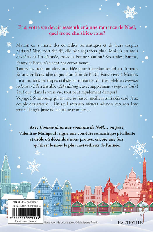 Avec Comme dans une romance de Noël... ou pas ! Valentine Maingault signe une comédie romantique pétillante et drôle où le mois de décembre nous prouve, encore une fois, que c'est le moment le plus merveilleux de l'année.