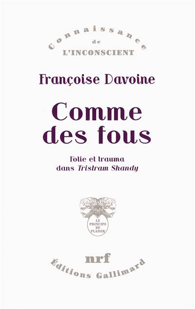 Sous la forme d'un dialogue de l'auteur avec son mari disparu (psychanalyste lui aussi et venu de la littérature), Comme des fous est le commentaire du livre premier de La Vie et les Opinions de Tristram Shandy, Gentleman, roman majeur de la littérature occidentale, écrit par Laurence Sterne (1713-1768) dans les dix dernières années de sa vie. Le dialogue, actif, contrasté, décrit vivement les traumas et la folie qui s'emparent des personnages, et propose une lecture psychanalytique, mais aussi philosophique, historique et politique de ce roman de la déraison. Françoise Davoine questionne à mi-voix l'usage que l'on peut faire de l'écriture et de la création littéraire dans une culture qui bat la breloque : à quoi bon Swift, ou Cervantès, ou Sterne, si le combat a lieu entre les fools et les knaves, entre les fous et les crapules ? Tandis qu'avec une insouciance baroque dans le ton même de Sterne, et en profitant sans doute de son propre statut de disparu, le défunt époux de l'auteur fait ironiquement le psychanalyste, par petites touches, cite au passage Lacan, Freud ou Hannah Arendt, et dérange si bien l'avancée obstinée de l'auteur que l'on oublie que c'est Françoise Davoine qui le fait parler : dans un monde de fous, l'écriture redonne vie aux disparus, et remet le temps en marche.