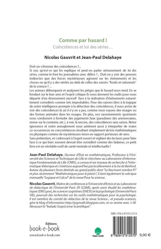 Les auteurs débusquent et analysent les pièges que le hasard nous tend. En se fondant sur le bon sens et l'esprit critique ils nous donnent les outils pour nous départir d'un étonnement excessif face à la réalisation d'événements naturellement considérés comme très improbables. Pour des raisons liées à la logique de notre intelligence prompte à la détection des coïncidences, il nous arrive de voir des coïncidences là où il n'y en a pas, comme nous voyons des visages ou des formes animales dans les nuages. De plus, nos raisonnements spontanés nous conduisent à formuler des jugements faux (paradoxes des anniversaires, erreur sur le contexte, etc.), à voir, là encore, des coïncidences sans raison. Notre ignorance et notre aveuglement nous amènent aussi à interpréter de vraies co-occurrences ou concomitances résultant simplement de lois mathématiques ou physiques comme de mystérieuses mises en rapport porteuses de sens. Sans prétention, et s'adressant à l'esprit ouvert et vigilant des lecteurs pour faire face à ce qui bien souvent devrait être considéré comme des fadaises,... ce petit livre est un véritable outil de santé mentale et intellectuelle !