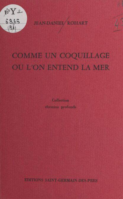 Comme un coquillage où l’on entend la mer, premiers poèmes en prose de Jean Daniel Rohart, marquent l’entrée en littérature d’un écorché vif, scrutant non seulement les tréfonds d’une problématique individuelle, mais retraçant aussi — par là même — les étapes d’un itinéraire d’angoisses que ne renieraient pas jeunes et moins jeunes d’aujourd’hui. Jouant d’un arsenal hétéroclite d’objets et de déchets (scories, colimaçons, vieux ours en peluche, vide-ordures, vieilles vestes ou vieilles chaussettes, boîtes de conserve, miettes et brisures), s’attardant à l’écoute des vieilles pulsions — des vieilles chansons — de ce qu’il reste du nombril de l’enfance, l’écriture de Jean Daniel ROHART, erre dans « l’escalier en colimaçon » d’un doux délire de métaphores et de comparaisons à répétition qui abolissent et ravivent tour à tour l’expression quotidienne du quotidien. Tout autant que ce travail sur le langage, tout autant que la fantasmagorie de hautbois et de « violoncelles de barbarie » qui l’accompagne, le caractère finalement subversif d’une démarche pourtant strictement individualiste force aussi l’intérêt, en particulier par cette singulière performance dans la conciliation des contraires : refus du réel qui est passion du réel, pulsion de mort qui est frénésie de vivre, obsession du vestige et de l’épave qui n’est que l’inconscient souci de re-dignifier ce qu’il reste d’un apparent gâchis ; désespoir — sublimation et quête en même temps — qui traduit l’amour profond d’un temps à retrouver, d’un paradis qui n’est mythique que parce que provisoirement irréalisé. Le genre frontalier de l’œuvre, à la croisée de plusieurs langages et de plusieurs réalités, établit en tout cas une synthèse originale entre le poème prolongé et le roman embryonnaire qui annonce, en J. D. Rohart, un écrivain multiple, total, entre le délabrement et le vertige de l’absolu, entre le tout et le rien, entre l’exigence et le désespoir, entre l’amertume et la frustration, entre l’effarement et la coquetterie, héraut attachant d’une fondamentale rage de vivre.