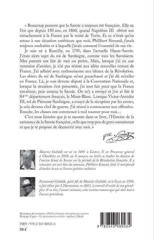 Moi, Philibert Simond, originaire de Savoie, ai consacré ma vie au rattachement de ma région natale à la France. D'abord prêtre, je n'ai pas résisté, passé trente ans, aux idées nouvelles venues de ce pays et j'ai adhéré avec enthousiasme aux valeurs de la Révolution. J'ai dû m'exiler en France et j'ai tout fait pour que ma patrie d'adoption envahisse puis annexe la Savoie en 1792. C'est mon histoire que je raconte dans ce livre, l'Histoire de la naissance de la Savoie française.