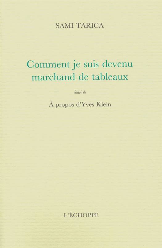 Grand marchand d'art moderne et contemporain de la seconde moitié du XXe siècle, S. Tarica raconte son parcours qui l'a mené de Smyrne, sa ville natale, au commerce de tapis anciens puis à la fréquentation de personnes telles que Fautrier ou Yves Klein.
