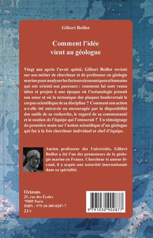 Vingt ans après l'avoir quitté, Gilbert Boillot revient sur son métier de chercheur et de professeur en géologie marine pour analyser les facteurs économiques et humains qui ont orienté son parcours. Un témoignage de première main sur l'action scientifique d'un géologue qui fut à la fois chercheur individuel et chef d'équipe.
