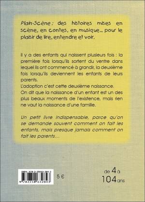 Dans la collection Plain-Scène : des histoires mises en scène, en contes, en musique... pour le plaisir de lire, entendre et voir. - « Il y a des enfants qui naissent plusieurs fois : la première fois lorsqu’ils sortent du ventre dans lequel ils ont commencé à grandir, la deuxième fois lorsqu’ils deviennent les enfants de leurs parents. L’adoption c’est cette deuxième naissance. On dit que la naissance d’un enfant est un des plus beaux moments de l’existence, mais rien ne vaut la naissance d’une famille. » - Un petit livre indispensable, parce qu’on se demande souvent comment on fait les enfants, mais trop rarement comment on fait les parents… - Au Pré du Plain, on aime les livres dont on sort un peu changés... pas forcément grandis, pas forcément savants, mais un peu différents ! - Le Pré du Plain s'efforce de mettre des livres dans toutes les poches. La plupart de nos ouvrages sont petits et peu onéreux. Ils s'envoient dans une simple enveloppe par abonnement ou clin d'oeil de lecture-partage. Mais il nous a semblé que "Comment on fait certains parents..." devait entrer dans d'autres lieux et pouvoir se lire à plusieurs, dans les familles, les associations dédiées à l'adoption, les services de protection de l'enfance et de soutien aux grandes personnes en errance, partout où l'on ne se contente pas de s'interroger sur « comment on fait les enfants » mais où l'on se demande aussi « comment on fait les parents »... Pour cette raison, ce livre de 44 pages couleur existera en deux formats pour des lecteurs de 4 à 104 ans : - Le petit album « pour toutes les poches » et paru en mai 2022 - Le grand « pour lire à plusieurs » est sorti en juillet 2022