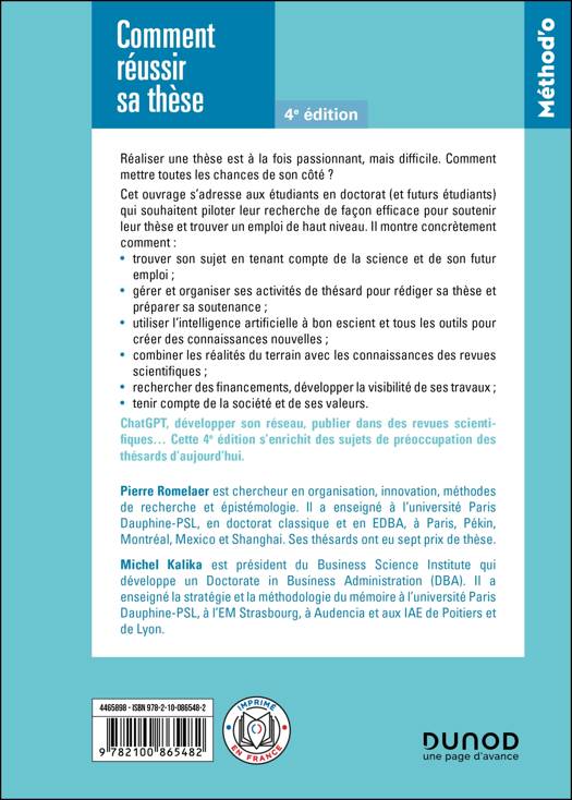 Cet ouvrage s’adresse aux étudiants en doctorat (et futurs étudiants) qui souhaitent piloter leur recherche de façon efficace pour soutenir leur thèse et trouver un emploi de haut niveau. Il montre concrètement comment  :