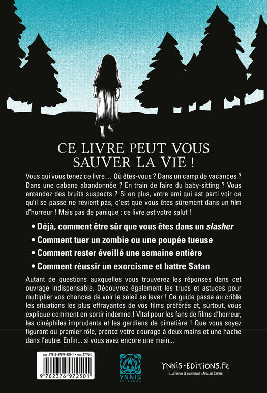 Autant de questions auxquelles vous trouverez les réponses dans cet ouvrage indispensable. Découvrez également les trucs et astuces pour multiplier vos chances de voir le soleil se lever ! Ce guide passe au crible les situations les plus effrayantes de vos films préférés et, surtout, vous explique comment en sortir indemne ! Vital pour les fans de films d’horreur, les cinéphiles imprudents et les gardiens de cimetière ! Que vous soyez figurant ou premier rôle, prenez votre courage à deux mains et une hache dans l’autre. Enfin... si vous avez encore une main...