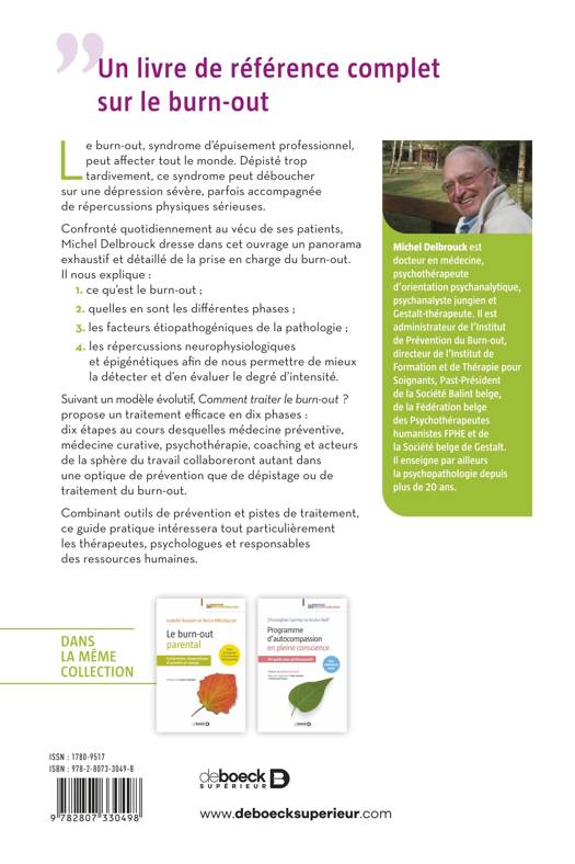 Suivant un modèle évolutif, Comment traiter le burn-out ? propose un traitement efficace en dix phases : dix étapes à ne pas brûler dans lesquelles médecine préventive, médecine curative, psychothérapie, coaching et acteurs de la sphère du travail collaboreront autant dans une optique de prévention que de dépistage ou de traitement du burn-out.