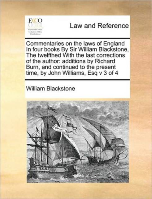 The 18th century was a wealth of knowledge, exploration and rapidly growing technology and expanding record-keeping made possible by advances in the printing press. In its determination to preserve the century of revolution, Gale initiated a revolution of its own: digitization of epic proportions to preserve these invaluable works in the largest archive of its kind. Now for the first time these high-quality digital copies of original 18th century manuscripts are available in print, making them highly accessible to libraries, undergraduate students, and independent scholars. This collection reveals the history of English common law and Empire law in a vastly changing world of British expansion. Dominating the legal field is the Commentaries of the Law of England by Sir William Blackstone, which first appeared in 1765. Reference works such as almanacs and catalogues continue to educate us by revealing the day-to-day workings of society. ++++ The below data was compiled from various identification fields in the bibliographic record of this title. This data is provided as an additional tool in helping to insure edition identification: ++++ Harvard University Law Library