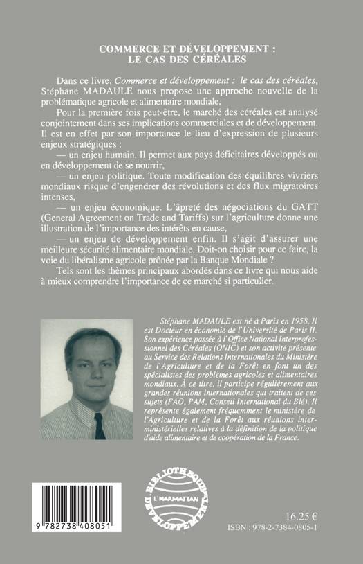 Une approche nouvelle de la problématique agricole et alimentaire mondiale. Le marché des céréales est analysé conjointement dans ses implications commerciales et de développement.