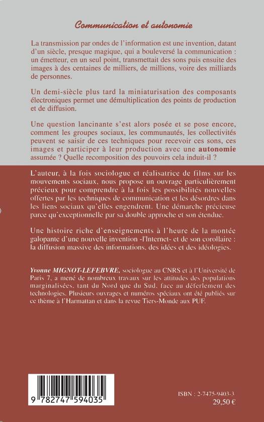 L'auteur, à la fois sociologue et réalisatrice de films sur les mouvements sociaux, nous propose un ouvrage particulièrement précieux pour comprendre à la fois les possibilités nouvelles offertes par les techniques de communication et les désordres dans les liens sociaux qu'elles engendrent.