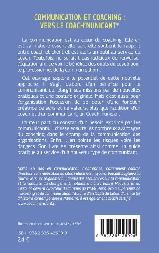 La communication est au coeur du coaching. Elle en est sa matière essentielle tant elle soutient le rapport entre coach et client et est alors un outil au service du coach. Toutefois, ne serait-il pas judicieux de renverser l'équation afin de voir le bénéfice des outils du coach pour le professionnel de la communication ? Cet ouvrage explore le potentiel de cette nouvelle approche. Il s'agit d'abord d'un bénéfice pour le communicant qui élargit ses missions par de nouvelles pratiques et une posture originale. Mais c'est aussi pour l'organisation l'occasion de se doter d'une fonction créatrice de sens et de valeurs, plus que l'addition d'un coach et d'un communicant, un Coach'municant. L'auteur part du constat d'un besoin exprimé par les communicants. Il dresse ensuite les nombreux avantages du coaching dans le champ de la communication des organisations. Enfin, il en pointe les risques voire les dangers. Son livre se présente ainsi comme un guide pratique au service d'un nouveau type de communicant.