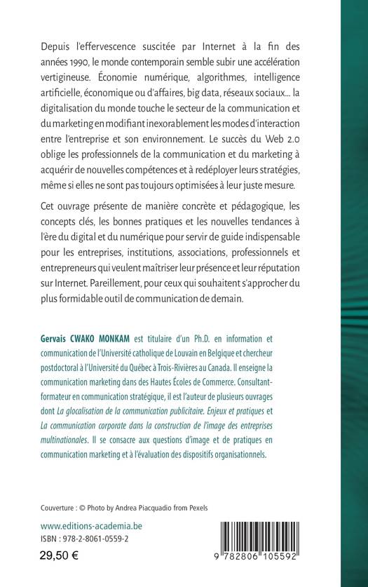 Aujourd'hui, avec l'avènement des modèles économiques 2.0, la communication marketing traditionnelle ne suffit plus. Petit à petit, les entreprises sont amenées à se tourner vers le digital ou le numérique pour rester compétitives et continuer de développer leur business. Si vous voulez connaître les tendances et utilisations actuelles de la communication marketing dans l'environnement du Web social, cet ouvrage vous aidera.