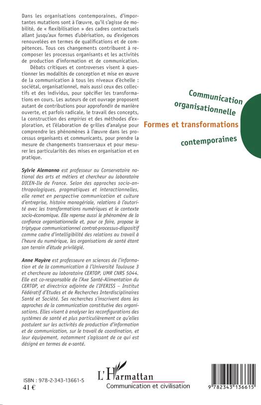 Dans les organisations contemporaines, d'importantes mutations sont à l'uvre. Mobilité, « flexibilisation », ubérisation : tous ces changements contribuent à recomposer les processus de production d'information et de communication. Cet ouvrage propose d'approfondir de manière ouverte le travail d'analyse pour comprendre les phénomènes de communication à tous les niveaux d'échelle : sociétal, organisationnel, individus et collectifs.
