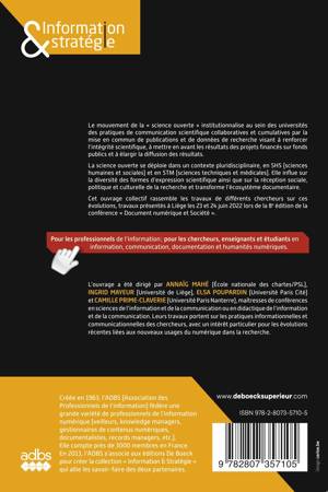 Le mouvement de la « science ouverte » institutionnalise au sein des universités des pratiques de communication scientifique collaboratives et cumulatives par la mise en commun de publications et de données de recherche visant à renforcer l’intégrité scientifique, à mettre en avant les résultats des projets financés sur fonds publics et à élargir la diffusion des résultats.