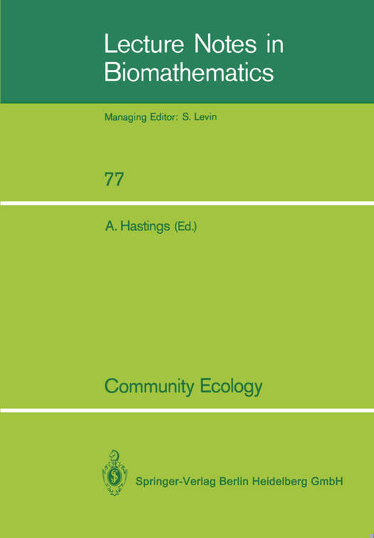 This book presents the proceedings of a workshop on community ecology organized at Davis, in April, 1986, sponsored by the Sloan Foundation. There have been several recent symposia on community ecology (Strong et. al., 1984, Diamond and Case, 1987) which have covered a wide range of topics. The goal of the workshop at Davis was more narrow: to explore the role of scale in developing a theoretical approach to understanding communities. There are a number of aspects of scale that enter into attempts to understand ecological communities. One of the most basic is organizational scale. Should community ecology proceed by building up from population biology? This question and its ramifications are stressed throughout the book and explored in the first chapter by Simon Levin. Notions of scale have long been important in understanding physical systems. Thus, in understanding the interactions of organisms with their physical environment, questions of scale become paramount. These more physical questions illustrate the role scale plays in understanding ecology, and are discussed in chapter two by Akira Okubo.