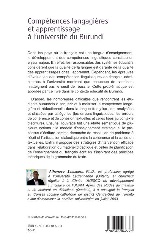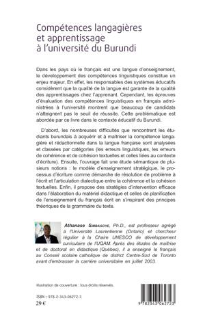 Les responsables des systèmes éducatifs considèrent que la qualité de la langue est garante de la qualité des apprentissages chez les apprenants. Cependant, les épreuves d'évaluation des compétences en français à l'université montrent que beaucoup de candidats n'atteignent pas le seuil de réussite. Cet ouvrage analyse les difficultés que rencontrent les étudiants burundais à maîtriser la compétence langagière et rédactionnelle dans la langue française et propose des stratégies d'intervention.