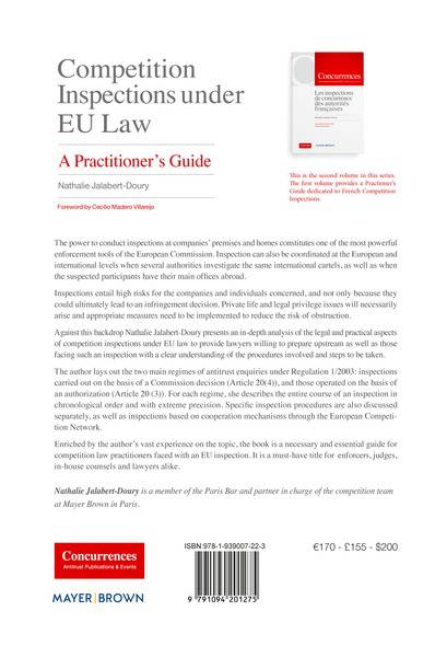 Enriched by the author's vast experience on the topic, the book is a necessary and essential guide for competition law practitioners faced with an EU inspection. It is a must-have title for enforcers, judges, in-house counsels and lawyers alike.