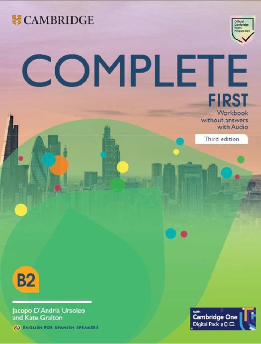 Complete First Third edition for Spanish Speakers is the most thorough preparation for B2 First. Complete First allows you to maximise students' performance with a stimulating learning environment, eye-catching images, easy-to-navigate units and fun topics. The Workbook without answers provides further practice for the language and skills taught in the Student's Book. The audio for the Workbook can be downloaded from cambridge.es/completefirst.