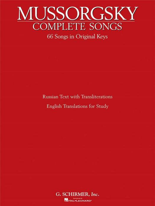 (Vocal Collection). A major edition of 67 songs, all in the original keys, which covers a variety of voice types. Cyrillic and transliteration are included with each song, as are line by line English translations for study. Mussorgsky's rich imagination as a composer of song is not well-known. The style is unique, the music directly emotional. There are four complete song cycles in this edition. The first, "Youthful Years," is an unconventional song grouping, not written for the same voice type, a "song cycle" that's more a convenience of collecting early work. It would better be viewed as 17 individual songs. The other three cycles are "The Nursery" (for mezzo-soprano), "Sunless" (for mezzo-soprano or baritone), and "Songs and Dances of Death" (mezzo-soprano or soprano). There are also 32 individual songs not in cycles. Mussorgsky wrote substantial revisions of 11 songs; both the original version and the second version are included for these.