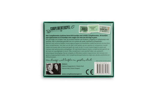 Mensen met autisme hebben mooie eigenschappen en kwaliteiten welke benadrukt worden door deze complimenten. het doel van dit spel is dat spelers op een speelse en ontspannen manier voelen en ervaren dat ze helemaal goed zijn zoals ze zijn. In onze maatschappij ervaren veel mensen met autisme extra uitdagingen. Dit spel bevat daarom tevens complimenten gericht op de inzet om vaardigheden te leren. Elk compliment is een positief teken van aandacht, erkenning en bevestiging. op een simpele en effectieve manier zorg je ervoor dat mensen zich gezien en gewaardeerd voelen. het Complimentenspel Autisme zorgt voor plezier, positiviteit en zelfvertrouwen.