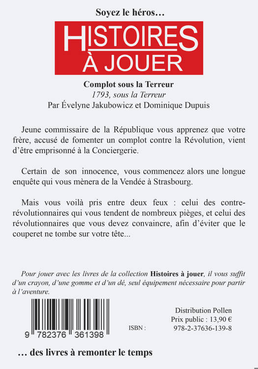 Jeune commissaire de la République vous apprenez que votre frère, accusé de fomenter un complot contre la Révolution, vient d'être emprisonné à la Conciergerie. Certain de son innocence, vous commencez alors une longue enquête qui vous mènera de la Vendée à Strasbourg. Mais vous voilà pris entre deux feux : celui des contre-révolutionnaires qui vous tendent de nombreux pièges, et celui des révolutionnaires que vous devez convaincre, afin d'éviter que le couperet ne tombe sur votre tête...