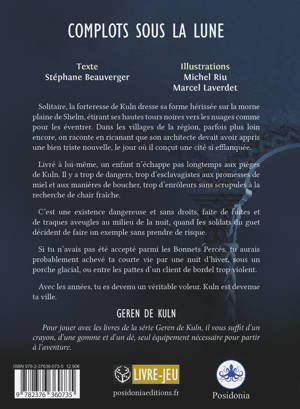 Solitaire, la forteresse de Kuln dresse sa forme hérissée sur la morne plaine de Shelm, étirant ses hautes tours noires vers les nuages comme pour les éventrer. Dans les villages de la région, on raconte en ricanant que son architecte devait avoir appris une bien triste nouvelle, le jour où il conçut une cité si efflanquée. Livré à lui-même, un enfant n’échappe pas longtemps aux pièges de Kuln. Il y a trop de dangers, trop d’esclavagistes aux promesses de miel et aux manières de boucher, trop d’enrôleurs sans scrupules à la recherche de chair fraîche. C’est une existence dangereuse et sans droits, faite de fuites et de traques aveugles au milieu de la nuit, quand les soldats du guet décident de faire un exemple sans prendre de risque. Si tu n’avais pas été accepté parmi les Bonnets Percés, tu aurais probablement achevé ta courte vie par une nuit d’hiver, sous un porche glacial, ou entre les pattes d’un client de bordel trop violent. Avec les années, Kuln est devenue ta ville.