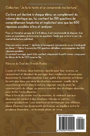 Collection « Je lis le texte et je comprends ma lecture » Ce livre est destiné à chaque élève, en complément du volume identique qui, lui, contient les 150 questions de compréhension (explicites et implicites) ainsi que les 600 réponses possibles à lire et analyser.
