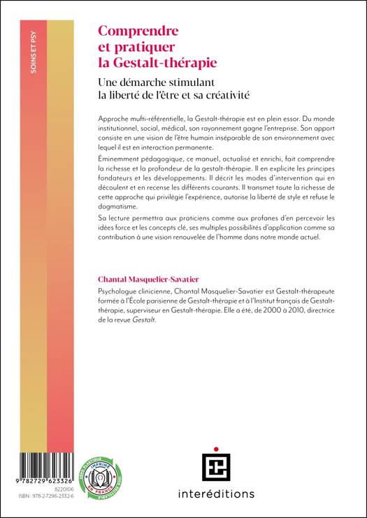 Cet ouvrage constitue un manuel pratique d''une des thérapies les plus utilisées en France. Du monde institutionnel, social et médical, son rayonnement gagne l'entreprise. Eminement pédagogique, l'ouvrage actualisé et enrichi fait comprendre la richesse et la profondeur de la gestalt-thérapie. Il en explicite les principes fondateurs et les développements et décrit les mots d'intervention qui en découlent.