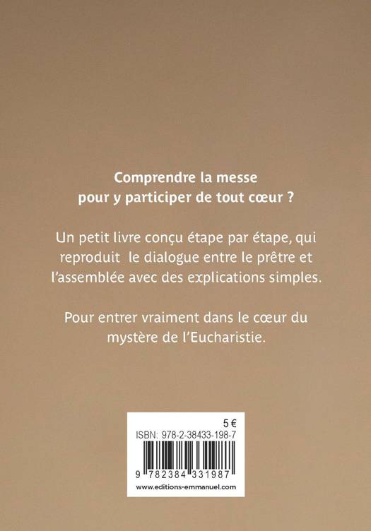 Un livret agraphé à petit prix qui permet de retrouver facilement le déroulé de la messe et de comprendre le sacrement de l'Eucharistie. Étape après étape, le dialogue entre le prêtre et l'assemblée est reproduit avec des explications simples qui permettent d'entrer vraiment dans le mystère de la messe.