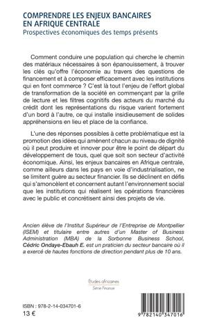 Comment conduire une population qui cherche le chemin des matériaux nécessaires à son épanouissement, à trouver les clés qu'offre l'économie au travers des questions de financement et à composer efficacement avec les institutions qui en font commerce ? C'est là tout l'enjeu de l'effort global de transformation de la société en commençant par la grille de lecture et les filtres cognitifs des acteurs du marché du crédit dont les représentations du risque varient fortement d'un bord à l'autre, ce qui installe insidieusement de solides appréhensions en lieu et place de la confiance. L'une des réponses possibles à cette problématique est la promotion des idées qui amènent chacun au niveau de dignité où il peut produire et innover pour être le point de départ du développement de tous, quel que soit son secteur d'activité économique. Ainsi, les enjeux bancaires en Afrique centrale, comme ailleurs dans les pays en voie d'industrialisation, ne se limitent guère au secteur financier.