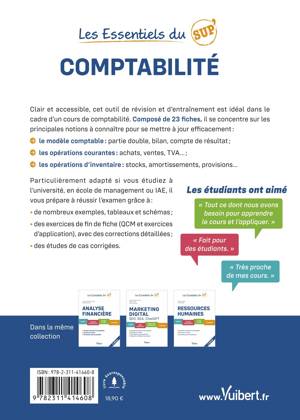 Clair et accessible, cet outil de révision et d’entraînement est idéal dans le cadre d’un cours de comptabilité. Composé de 23 fiches, il se concentre sur les principales notions à connaître pour se mettre à jour efficacement :