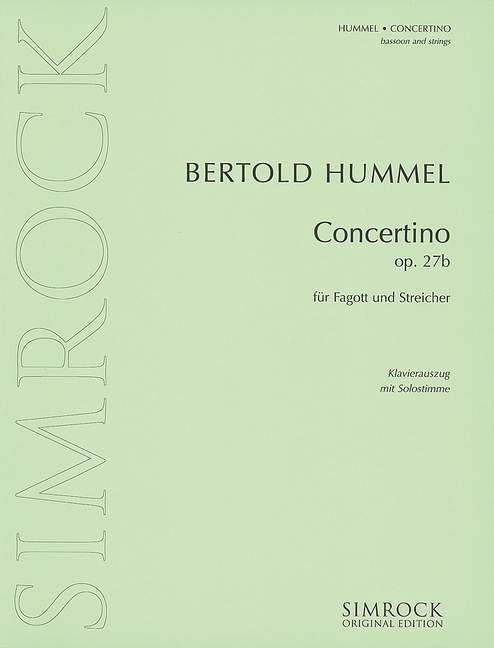 Bertold Hummel composed the Concerto for Bassoon and String Orchestra first with the basset horn as solo instrument before arranging it for bassoon at the suggestion of Eberhard Buschmann. The piece is characterized by the use of French folk-song melodies which are integrated into their own thematic material. In the first movement, Prologue, the solo instrument stands out while declaiming in a recitative-like manner. The second movement, Concerto, follows the meaning of the word 'concertare' = 'compete' by combining the soloist and the string ensemble 'competitively' to form a unified whole. The short epilogue is a fading away, with strictly alternating solo instrument and strings. Instrumentation: bassoon and strings op. 27b