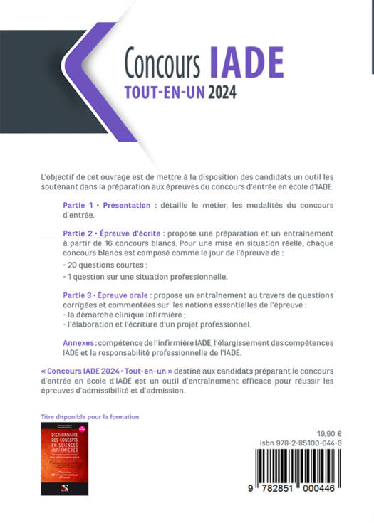 L'objectif de cet ouvrage est de mettre à la disposition des candidats un outil les soutenant dans la préparation aux épreuves du concours d'entrée en école d'IADE.