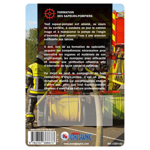 Ce livret se veut le compagnon de tout conducteur d’engin-pompe. C’est un guide richement illustré qui accompagnera chacun d’entre eux, ainsi que tout sapeur-pompier désireux d’enrichir sa culture professionnelle.