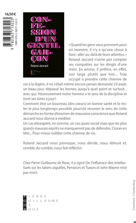 Chacun de nous porte un monstre en lui qu'il dissimule avec plus ou moins d'habileté. Seul le diable sait ce que nous pensons vraiment. J'ai tenté d'usurper sa place et de donner aux lecteurs quelques fragments de ce qui m'a parfois valu une réputation sulfureuse dont je n'ai jamais eu honte, bien au contraire, ayant la certitude que sans elle nos écrits - et la littérature en général - ne présenteraient aucun intérêt. La fleur de lotus ne pousse que dans la boue, dit un proverbe vietnamien. Autoportrait d'un gentil garçon.