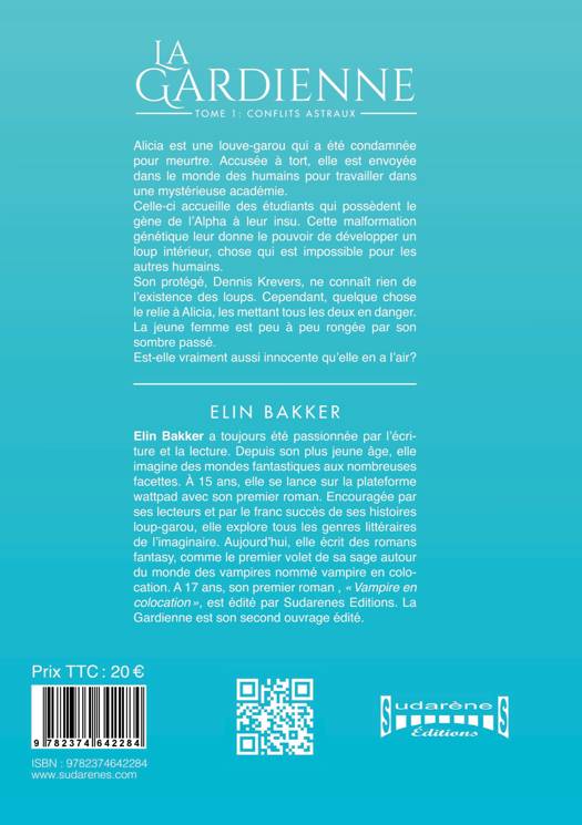 Condamnée pour meurtre, la jeune louve-garou Alicia est envoyée dans une mystérieuse académie... Alicia est une louve-garou qui a été condamnée pour meurtre. Accusée à tort, elle est envoyée dans le monde des humains pour travailler dans une mystérieuse académie. Celle-ci accueille des étudiants qui possèdent le gène de l'Alpha à leur insu. Cette malformation génétique leur donne le pouvoir de développer un loup intérieur, chose qui est impossible pour les autres humains. Son protégé, Dennis Krevers, ne connaît rien de l'existence des loups. Cependant, quelque chose le relie à Alicia, les mettant tous les deux en danger. La jeune femme est peu à peu rongée par son sombre passé. Est-elle vraiment aussi innocente qu'elle en a l'air? Le premier tome d'une saga jeunesse fantasy qui vous emmènera dans un univers unique aux côtés de loups-garous et d'humains pas comme les autres ! EXTRAIT La nuit suivante, mes pouvoirs lupins se sont manifestés, transformant mon existence à tout jamais. J'ignorais si cela avait un rapport avec notre découverte ou non, mais je ne suis jamais retournée là-bas. Kyle était tellement excité que le souvenir même de cet instant me donne le sourire. Je secoue la tête, revenant à ma réalité. Après tout, je ne suis pas ici pour revenir vers le passé, mais pour avancer en direction du futur. Karl n'a pas prononcé un seul mot durant le trajet qui me semble durer une éternité. Les branches craquent sous mes bottes noires et abîmées que je n'affectionne pas particulièrement. Mes vêtements sont baignés de sueur et mes pieds font mal. Quelle entrée fracassante ! Tout aurait été tellement plus facile et pratique si on avait fait le trajet sous nos formes animales ! CE QU'EN PENSE LA CRITIQUE Roman génial ! Les personnages sont attachants et ont une vraie profondeur. - Anne-So-5, Booknode À PROPOS DE L'AUTEUR Elin Bakker a toujours été passionnée par l'écriture et la lecture. Depuis son plus jeune âge, elle imagine des mondes fantastiques aux