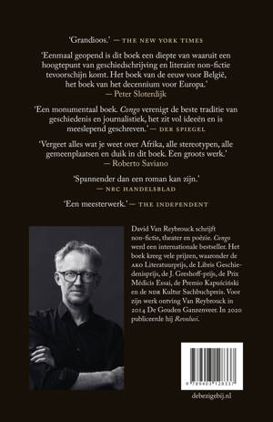 Er is aan het begin van de eenentwintigste eeuw nauwelijks een roeriger natie dan Congo, het reusachtige land in het hart van Afrika, dat barst van de grondstoffen die onontbeerlijk zijn in onze moderne tijd – én van de gruwelijke conflicten. Hoe kon de vroegere, relatief rustige kolonie van België, sinds 1960 onafhankelijk, zo veranderen? David Van Reybrouck beschrijft voor het eerst de verbijsterende geschiedenis van Congo, van ruim voor de komst van de ontdekkingsreiziger Stanley tot en met de invloed van China in de laatste tien jaar en de recente economische crisis. Van 1885 tot 1908 werd het land bestierd door koning Leopold ii, die een fortuin verdiende met de exploitatie van rubber. De kolonisatie door België in de periode van 1908 tot 1960 zorgde voor industrialisatie en infrastructuur, maar werd ook gekenmerkt door paternalisme, zo niet betutteling. De onverhoedse overgang van kolonie naar onafhankelijke staat rond 1960 is een adembenemend verhaal vol idealisme en gekonkel. Het nieuwe land stortte zich in een turbulent avontuur dat steeds wilder en chaotischer werd en na tweeëndertig jaar dictatuur onder Mobutu leidde tot een van de dodelijkste conflicten sinds de Tweede Wereldoorlog. Van Reybrouck baseert zich niet alleen op zeldzaam archiefmateriaal en baanbrekend onderzoek, maar vooral ook op honderden gesprekken die hij met Congolezen voerde. Zijn ooggetuigen gaan van eeuwlingen tot kindsoldaten, van rebellenleiders tot smokkelaars, van ministers tot maniokverkoopsters. Hun verhalen heeft de auteur in zijn grote geschiedenis geïntegreerd.