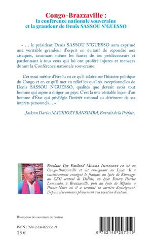« ...le président Denis SASSOU N'GUESSO aura exprimé une véritable grandeur d'esprit en évitant de répondre aux attaques, assumant même les fautes de ses prédécesseurs et pardonnant à tous ceux qui lui ont proféré injures et menaces durant la Conférence nationale souveraine. Cet essai mérite d'être lu en ce qu'il éclaire sur l'histoire politique du Congo et en ce qu'il met en relief les qualités exceptionnelles de Denis SASSOU N'GUESSO, qualités que devrait avoir tout homme qui aspire à diriger un pays. C'est là une véritable leçon d'un homme d'État qui privilégie l'intérêt national au détriment de ses intérêts personnels...»