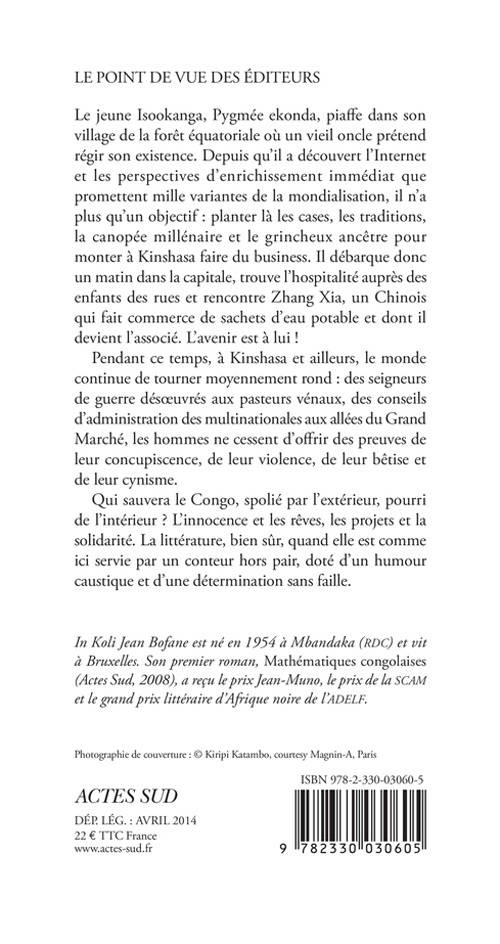Le jeune Isookanga, Pygmée ekonda, piaffe dans son village de la forêt équatoriale où un vieil oncle prétend régir son existence. Depuis qu'il a découvert l'Internet et les perspectives d'enrichissement immédiat que promettent mille variantes de la mondialisation, il n'a plus qu'un objectif : planter là les cases, les traditions, la canopée millénaire et le grincheux ancêtre pour monter à Kinshasa faire du business. Il débarque donc un matin dans la capitale, trouve l'hospitalité auprès des enfants des rues et rencontre Zhang Xia, un Chinois qui fait commerce de sachets d'eau potable et dont il devient l'associé. L'avenir est à lui !
