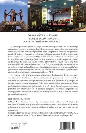 La République démocratique du Congo, décentralisée depuis 2006, s’est vue davantage découpée en 2015, avec la partition de six de ses onze provinces en vingt et une nouvelles unités, pour un total de vingt-six provinces. Cet ouvrage collectif analyse plusieurs dimensions du découpage depuis 2015, avec une attention particulière aux relations politiques entre provinces et pouvoir central, à l’informel, aux variations de capacité entre provinces, à la gouvernance, aux évolutions identitaires produites par le découpage et aux élites politiques. Il offre des grilles de lecture qui devraient permettre aux observateurs de la politique congolaise de mieux comprendre les développements en cours et les enjeux, au niveau provincial et dans la relation entre le provincial et le national.