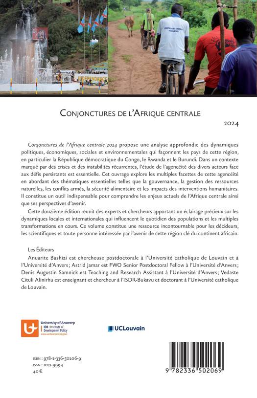Conjonctures de l'Afrique centrale 2024 propose une analyse approfondie des dynamiques politiques, économiques, sociales et environnementales qui façonnent les pays de cette région, en particulier la République démocratique du Congo, le Rwanda et le Burundi. Dans un contexte marqué par des crises et des instabilités récurrentes, l'étude de l'agencéité des divers acteurs face aux défis persistants est essentielle. Cet ouvrage explore les multiples facettes de cette agencéitéen abordant des thématiques essentielles telles que la gouvernance, la gestion des ressources naturelles, les conflits armés, la sécurité alimentaire et les impacts des interventions humanitaires. Il constitue un outil indispensable pour comprendre les enjeux actuels de l'Afrique centrale ainsi que ses perspectives d'avenir. Cette douzième édition réunit des experts et chercheurs apportant un éclairage précieux sur les dynamiques locales et internationales qui influencent le quotidien des populations et les multiples transformations en cours. Ce volume constitue une ressource incontournable pour les décideurs, les scientifiques et toute personne intéressée par l'avenir de cette région clé du continent africain.