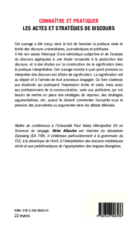 Cet ouvrage a été conçu dans le but de favoriser la pratique orale et écrite des discours universitaires, journalistiques et politiques. Il s'adresse aux étudiants qui pratiquent l'expression écrite et orale, mais aussi aux professionnels de la communication, voire aux politiciens qui ont besoin de mettre en place des stratégies de réponse.
