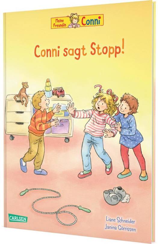 Aber es ist nicht immer leicht, Stopp zu sagen. In diesem Bilderbuch lernen Conni und ihre Freund*innen, dass nur sie allein über ihren Körper bestimmen dürfen. Sie üben, Grenzen zu setzen und anderen gegenüber klar zu kommunizieren, wenn sie etwas nicht mögen: gekitzelt und gepiekt werden, Nachschlag beim Essen oder geknuddelt und geküsst werden, zum Beispiel. Die Kinder lernen Strategien kennen, die ihnen helfen, deutlich "Halt, Stopp!" zu sagen und verstehen, dass ein Nein von allen akzeptiert werden muss.