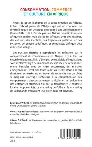 Avant de poser le champ de la consommation en Afrique, il faut d'abord parler de l'Afrique qui est un continent de diversité et qu'il est utopique de réduire à une unité homogène. L'ouvrage s'intéresse à la compréhension des comportements des consommateurs africains et met en lumière des entreprises africaines qui ont su transformer le contexte local en opportunités. Le marketing de l'offre et le marketing de la demande trouveront leur place dans cet ouvrage.