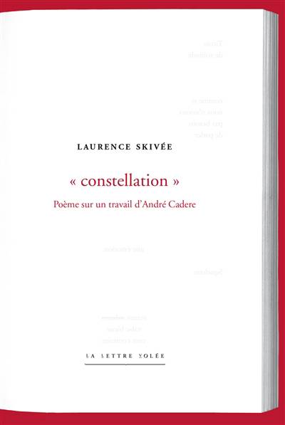 Laurence Skivée (Liège, 1973) artiste et autrice, vit et travaille à Bruxelles. Après des études en photographie puis en pratiques artistiques, elle se consacre désormais prioritairement à l'écriture. En 2013, paraît son premier livre d'artiste, Je m'emballe, aux éditions de La Lettre volée. Chez le même éditeur, trois récits suivront dans la même collection : L'air est différent en 2018 ; Le Laveur de vitres en 2022 et Détentrice en 2025. Son premier recueil de poésie Os cuillère paraît en 2024 dans la collection « Poiesis » du même éditeur et à présent, en 2025, Constellation. Poème sur un travail d'André Cadere. Elle a également publié En avant ! en 2016, ensuite Diaphane s'installe et Piétons traversez en 2021 aux éditions de L'Âne qui butine.
