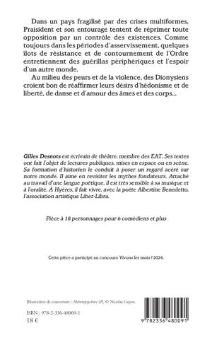 Dans un pays fragilisé par des crises multiformes, Praisident et son entourage tentent de réprimer toute opposition par un contrôle des existences. Comme toujours dans les périodes d'asservissement, quelques îlots de résistance et de contournement de l'Ordre entretiennent des guérillas périphériques et l'espoir d'un autre monde. Au milieu des peurs et de la violence, des Dionysiens croient bon de réaffirmer leurs désirs d'hédonisme et de liberté, de danse et d'amour des âmes et des corps...